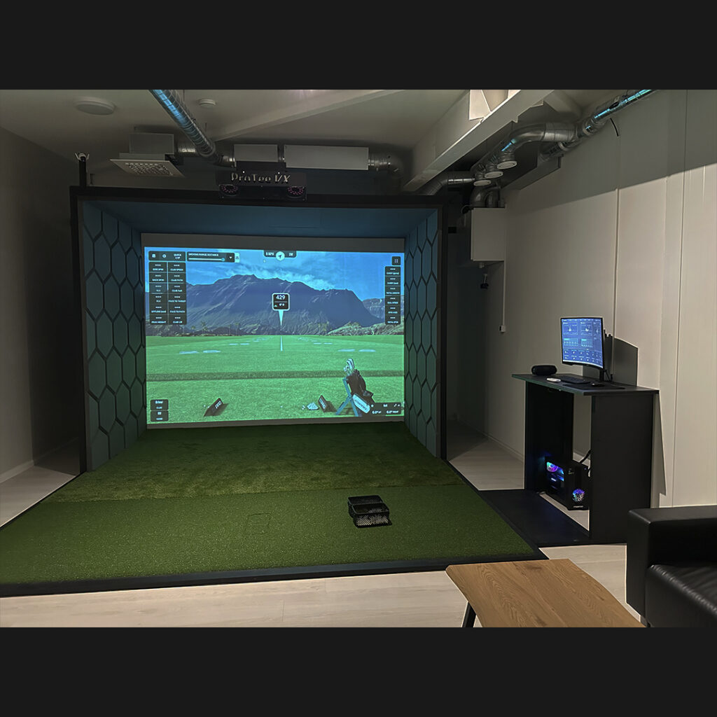 Tilat sisältävät Protee VX golfsimulaattorin, mikä tarjoaa huipputarkan mailadatan, hidastuskamerat (kuva edestä ja mailasta) ja useita Suomikenttiä!